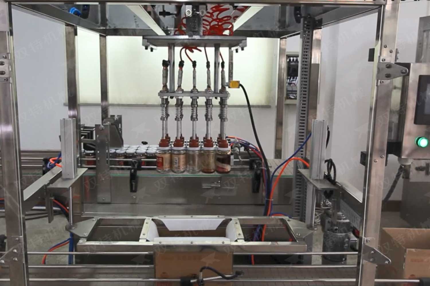 濃醬灌裝機(jī)主要是針對(duì)食品行業(yè)的醬類分裝,適用于調(diào)味品中帶顆粒并且濃度較大的辣椒醬、豆瓣醬、番茄醬、沙拉醬、花生醬、芝麻醬、果醬、牛油火鍋底料、紅油火鍋底料等物質(zhì)的粘稠醬類的灌裝。濃醬灌裝設(shè)備配帶攪拌功能,并且使灌裝更加精確。